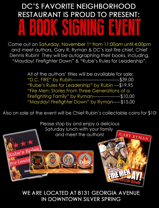 Some great shots from the book signing at the Tavern at Fire Station 1 on Georgia Avenue in Silver Spring, MD with Chief Dennis Rubin.