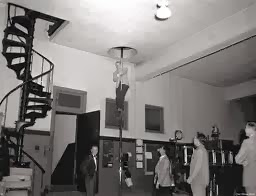 A hitch in the process of getting out the door as fast as possible remained, some thought. Getting from the bunkroom on an upper floor to the apparatus was slowed by the common use of circular stairs which were in place to keep the horses from trying to leave the first floor.