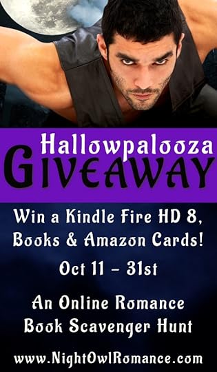 Ready to win Amazon cards, romance books and other prizes? I’m one of the sponsors of the Night Owl Romance Hallowpalooza Scavenger Hunt.