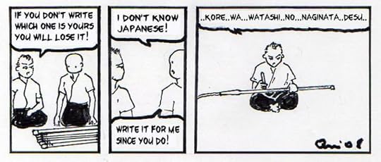 A naginata is a Japanese spear, although it is more like a short, curved sword attached to the end of a pole. I found a site that had these cartoons, so I thought I’d share.