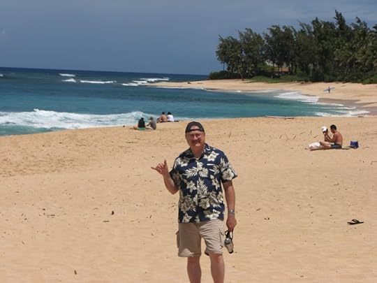 This beach is on the north side of Oahu. I don't normally wear my hat backwards, but I turned it so I could give the "hangin' loose" sign in style.