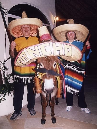 Or, night of the long guns, night of the big sombreros, night of the silly moustaches, night of the colorful serapes. I think the donkey would have preferred to be anywhere else.