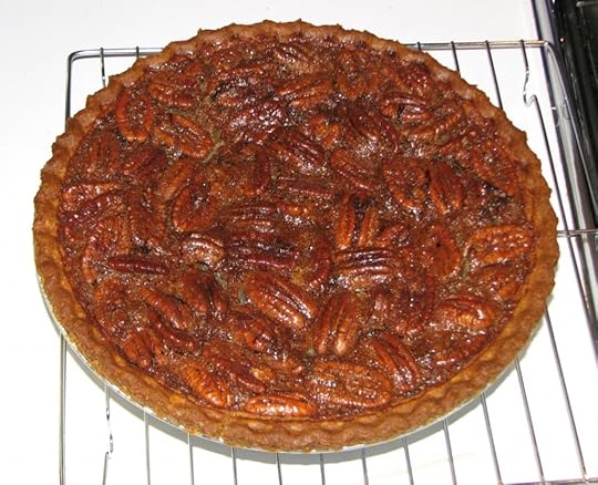 Yes, it's the wrong holiday, I know, but I just ran across this photo and had to post it. This was from Thanksgiving day in 2006, and unless I'm mistaken, it's a pie that I made. This is the way a pecan (pronounced puh-KAHN, all o' you Yankees) pie is supposed to look–none of that ground-up, discarded pecan chips for us.