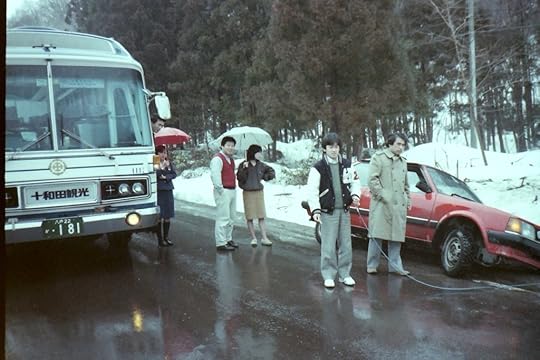 No vehicles, then, all of a sudden, people everywhere. I think this busload of people must have been staying at the ryokan. Everyone wanted to "supervise" my rescue. After a bit, the passengers re-boarded the bus and went about their way.