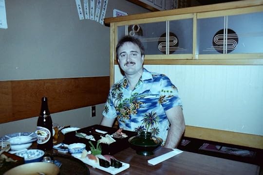 Well, not everything is about food, but I wanted to share some more of my Japan photos, and today they start with food. I'm about 34 years old in this photo, and it was so long ago that, if I didn't know it was me, I wouldn't recognize myself. The restaurant was located in the city of Hachinohe, Japan (pronounced hah-chee-noh-hay), which means it was the eighth of the "gate" cities in the north of Japan. The table was one of those short ones where you sit on a cushion on the floor.