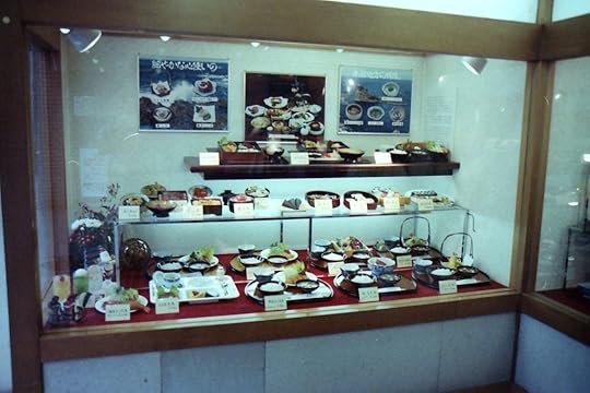 Every good restaurant in Japan has to have depictions of their dishes in a display window visible from the outside. It all looks very real, very appetizing, but it's all plastic, just like the green stuff on the sushi plate, but much more carefully crafted.