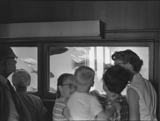 That's the back of my head in the center of the photo. Mom's giving me a ride around the aquarium. We're flanked by two of my sisters, and my dad's half-brother is at the left edge of the frame. If you think he looks like he could be sixty, that's because he was.