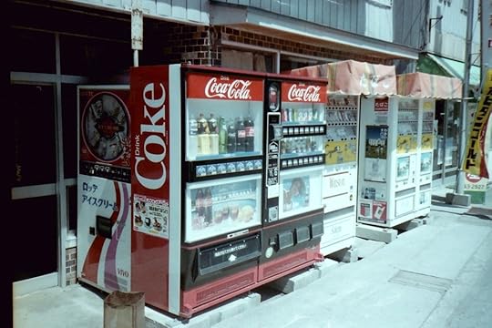 There's lots of things in Japan just sitting on the sidewalks to meet your needs in addition to people in airports handing you money. For instance, there are vending machines everywhere, serving everything from cigarettes to beer, wine, and bottles of hard liquor. Check out these machines, where you can get ice cream, soft drinks, fruit juice, isotonic drinks, and plenty of cigarettes.