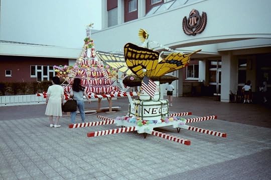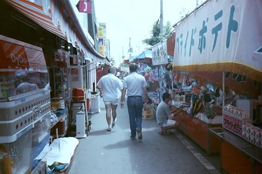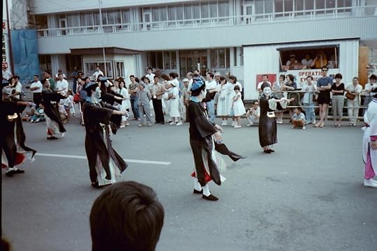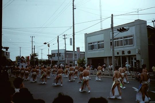 I helped carry this float, and whenever we rested, I took the opportunity to take photos. I usually wore the camera on a lanyard around my neck. When the leader blew his whistle, we had to pick up the mikoshi immediately and quite violently. One time, my camera hung down over one of the carrying poles, and as we lifted the float on high, my camera swung over my head and into the crowd, breaking my camera and bruising some unfortunate person on the sidelines. I was able to pop my camera back together and continue with my photography, but I couldn't apologize enough to satisfy the poor Japanese person I had wounded.