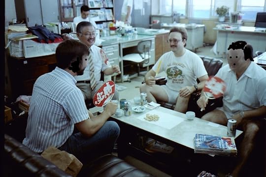 Also on the morning of the parade, a couple of my coworkers and I were invited to visit the Misawa City offices. We got quite a tour, and something was taking place at this table that you would never see in America — they served us beer and sake during working hours. We were preparing to take part in the parade, also known as the Mikoshi Parade, where we carried a float with the Japanese American Friendship Club, or JAFC. We had met one of the city workers in a nice little restaurant called Hana Zen, which means "flower table," and he invited us to visit the city offices.