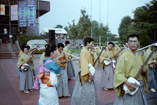 These shamisen players were getting ready to march in the parade. At least two of them were taking this opportunity to light up. Virtually everyone in Japan smoked. I was told that cigarettes were approved by the government, and the Japanese believed the government could do no wrong, therefore cigarettes were not dangerous. In any case, once everyone was hooked, it made no difference. I suspect the Yakusa got a healthy kickback on all cigarette transactions.