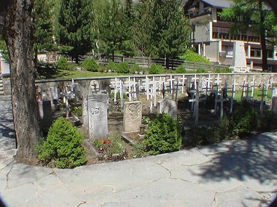 I have no photos of my friend to share, but I'll start by showing some views of the cemetery in Zermatt, Switzerland, near the Matterhorn.