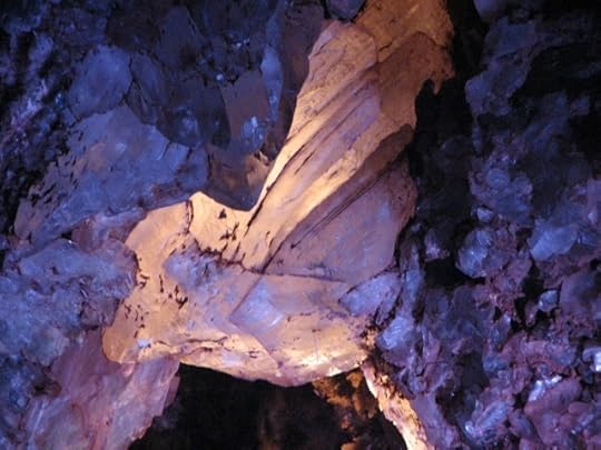 I took this photo of a crystal in Alabaster Caverns, Oklahoma, in July of 2010. The cave lighting had been redone not too many years ago to replace it with cool lighting placed a bit more artistically.