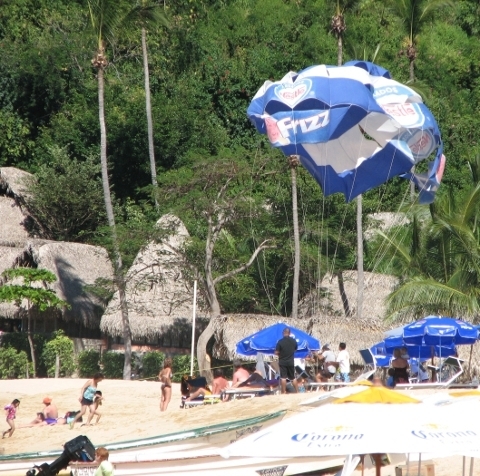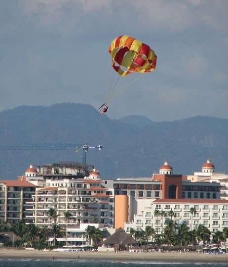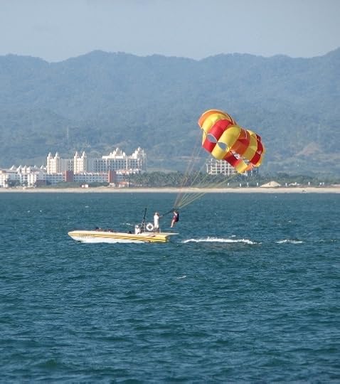 I'm going to get a little crazy today with my photo postings, but I'm sorta making up for missing yesterday, so humor me. I took all these photos near Puerta Vallarta. We are acquainted with none of the people in any of these photos, and although I've always wanted to parasail, I chickened out of partaking of this pastime. Actually, the way the vendedores were driving the tow boat around other boats both moored and moving near the beach, I judged it much, much safer to stay on the ground. Still, it was fascinating to watch, so I'm including a number of shots here.