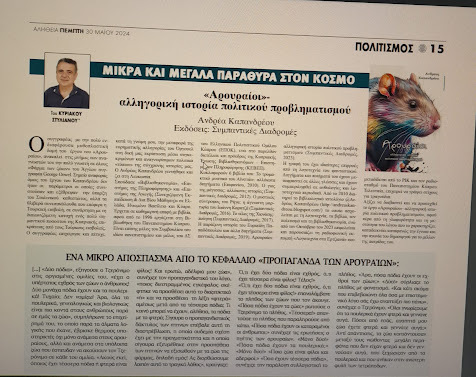 Παρουσίαση των "Αρουραίων" στην εφημερίδα "Αλήθεια" από τον συγγραφέα Κυριάκο Στυλιανού
