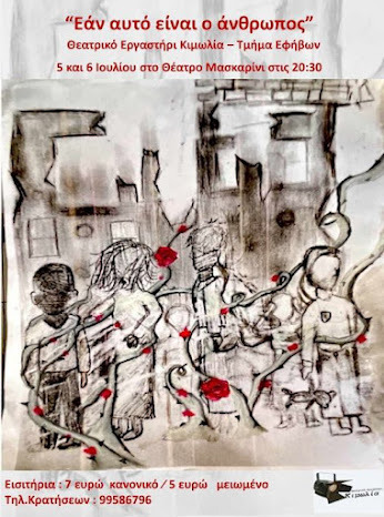 Η θεατρική παράσταση με τίτλο «Εάν αυτό είναι οάνθρωπος», ανέβηκε τον Ιούλιου του 2024 από τους εφήβους του Θεατρικού Εργαστηρίου Κιμωλία και βασίστηκε σε θεατρικά έργα, μαρτυρίες αληθινώνπροσώπων, ντοκουμέντα, ημερολόγια, ειδησεογραφία, ποίηση, μουσικές, καθώς καισυγγραφή κομματιών από τους ίδιους τους μαθητές με θέμα το Β' Παγκόσμιο Πόλεμο,αλλά και τις σημερινές εξελίξεις. Κεντρικό θέμα της παράστασης είναι ο άνθρωποςκαι οι καταστροφές που έφερε ο χειρότερος πόλεμος όλων των εποχών...