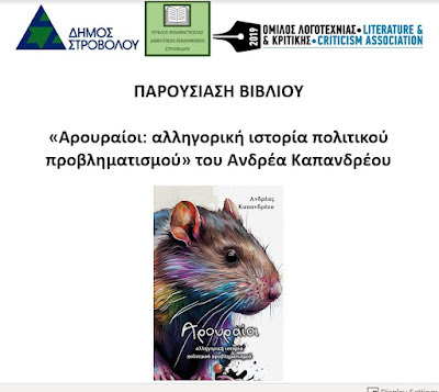 στην εκδήλωση παρουσίασης τουβιβλίου του Ανδρέα Καπανδρέου Αρουραίοι