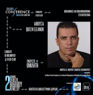 Ομιλητής: ΑνδρέαςΚ. Ανδρέου (Ανδρέας Καπανδρέου), συγγραφέας, ΥπεύθυνοςΤομέα Συστημάτων και Τεχνολογιών Πληροφόρησης, Βιβλιοθήκη Πανεπιστημίου Κύπρου