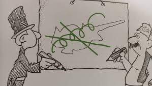 Με γλαφυρό και χιουμοριστικό τρόπο, ο Πιν καταδεικνύει την παράλογη κατάσταση που επικρατεί στην Κύπρο με το φτιαχτό «σύνορο» που ονομάζεται Πράσινη Γραμμή και χωρίζει το νησί στα δύο. Καυτηριάζει επίσης την υποκριτική στάση που κρατούν οι μεγάλες δυνάμεις ανεχόμενες την αδικία και τους τραμπουκισμούς της Τουρκίας. Δεν διστάζει όμως, να καυτηριάσει και τη δουλική στάση ορισμένων συμπατριωτών μας που συμβιβάστηκαν με την κατοχή.