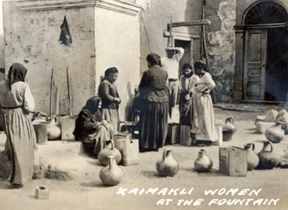 Στην περιοχή Καϊμακλί (Λευκωσία) γυναίκες γεμίζουν τις στάμνες τους με νερό από τη δημόσια βρύση.