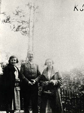 Ο Νίκος Καζαντζάκης με την Ελένη Σαμίου και μια από τις αδελφές Παπαϊωάννου που τους συνόδευαν στο ταξίδι στις Πλάτρες (Τρόοδος).