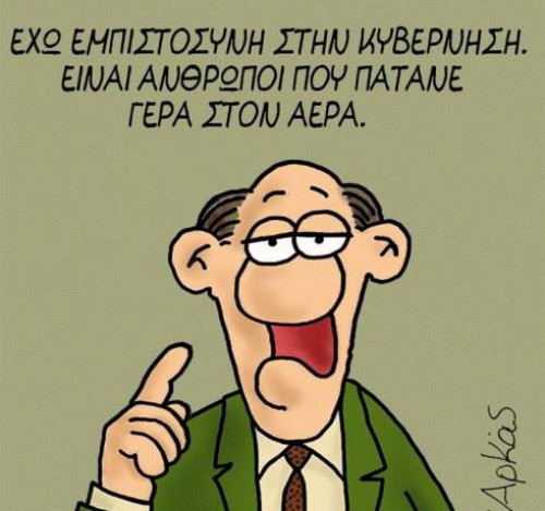 στην φυλακή ή ότι έχει εκτίσει κάποια ποινή, μάλλον στην δικτατορία για πολιτικούς λόγους, αφού διέκριναν ένα σαφώς αριστερό προφίλ. Με τις ΧΑΜΗΛΕΣ ΠΤΗΣΕΙΣ κυκλοφόρησε η φήμη ότι είναι ψυχίατρος και με το Η ΖΩΗ ΜΕΤΑ ότι είναι άθεος, αριστερός ψυχίατρος. Όταν έφτιαξε τους ΣΥΝΟΜΗΛΙΚΟΥΣ πίστεψαν ότι είναι κοντά στον θάνατο από βαθειά γηρατειά -κάποιοι μάλιστα έγραψαν ότι έχει ήδη πεθάνει. Με τα ΕΠΙΚΙΝΔΥΝΑ ΝΕΡΑ εδραιώθηκε η άποψη ότι είναι αριστερός. Δεν ξέρουμε αν με το ΜΑΛΛΙ ΜΕ ΜΑΛΛΙ πίστεψαν ότι είναι κομμώτρια, αλλά με ΤΑ ΜΑΥΡΑ ήταν σίγουροι ότι βρίσκεται στα τελευταία στάδια κάποιας ανίατης αρρώστιας- αρκετοί, μάλιστα, μας έστειλαν μηνύματα ανησυχίας στο Inbox. Με τα ΘΗΡΙΑ ΕΝΗΜΕΡΑ, τα ΖΩΑ ΠΟΛΙΤΙΚΑ και τα πρόσφατα πολιτικά του σκίτσα πολλοί θεώρησαν ότι είναι ακραιφνής δεξιός και κάποιοι του επιτέθηκαν γιατί τους ξεγέλασε και τόσον καιρό τον είχαν για αριστερό. Συνεπώς ο Αρκάς είναι ένας υπέργηρος, άθεος ψυχίατρος που υποφέρει από καταληκτική νόσο, και ψηφίζει Νέα Δημοκρατία –κάτι που το έκρυβε επιμελώς για δεκαετίες, ρίχνοντας στάχτη στα μάτια των αριστερών.Βέβαια είναι δικαίωμα του καθενός να προβάλλει στα καλλιτεχνικά έργα προσωπικές του απόψεις , συναισθήματα και εικόνες, όπως μπορεί κάποιος να βλέπει στα σύννεφα άλογα που τρέχουν ή το πρόσωπο της αγαπημένης του. Όμως ο Αρκάς, εδώ και τριανταπέντε χρόνια κάνει ένα και μόνον πράγμα: χιούμορ. Παίζει με τις λέξεις, με τα στερεότυπα και τις κοινωνικές συμβάσεις για να παράγει αυτό το συγκεκριμένο προϊόν. Δεν κάνει ούτε σάτιρα, ούτε κοινωνική παρέμβαση, ούτε κατάθεση γνώμης. Κάνει απλώς χιούμορ. Το αν το κάνει καλά ή όχι ας το κρίνουν οι χιλιάδες αναγνώστες των δεκάδων βιβλίων του".