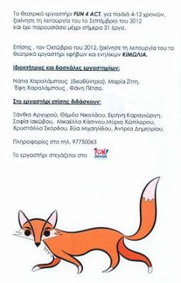 Το θεατρικό εργαστήρι για παιδιά FUN 4 ACT των ηθοποιών Νάτιας Χαραλάμπους, Μαρίας Ζίττη, Έφης Χαραλάμπους και Φάνης Πέτσα λειτουργεί από το 2012 και έχει ανεβάσει μέχρι τώρα περισσότερες από 30 παραστάσεις.Η πρώτη παράσταση που έτυχε να παρακολουθήσω μαζί με τη μικρή μου κόρη ήταν η παράσταση «Η μάγισσα της ειρήνης», ένα έργο βασισμένο στο παιδικό παραμύθι «Ο μάγος της ειρήνης» της Κύπριας συγγραφέως Τούλας Κακουλλή.