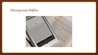 Ηλεκτρονικό ΒιβλίοΗ αδιαμφισβήτητη κυριαρχία του έντυπου βιβλίου ως μέσο μετάδοσης της γνώσης έφτασε μέχρι τον 21ο αιώνα. Κάπου στις αρχές του 21ου αιώνα, το έντυπο βιβλίο άρχισε να αμφισβητείται από τις νέες τάσεις της τεχνολογίας που έφεραν στο προσκήνιο το ηλεκτρονικό βιβλίο, την ανάγνωση σε υπολογιστές, tablets, έξυπνα τηλέφωνα κτλ. Εδώ επιβάλλεται να τονίσουμε πως αυτό που αμφισβητήθηκε δεν ήταν το βιβλίο αυτό καθαυτό αλλά η μορφή του.Η πλειοψηφία όσων μεγάλωσαν με το έντυπο βιβλίο συνεχίζει να δείχνει την προτίμησή της σε αυτό. Δεν πρέπει όμως να αγνοούμε και τα πλεονεκτήματα που έχει σε κάποιους τομείς το ηλεκτρονικό βιβλίο. Κατ’ αρχάς το ηλεκτρονικό βιβλίο είναι, συνήθως λόγω κόστους παραγωγής και διάδοσης φτηνότερο από το έντυπο. Μπορεί κάποιος να ανατρέξει σε αυτό, και πολύ ευκολότερα να εντοπίσει ένα συγκεκριμένο σημείο, μια πληροφορία που τον ενδιαφέρει κάνοντας απλά μια αναζήτηση, ενώ στο έντυπο βιβλίο θα έπρεπε να μετροφυλλήσει τις σελίδες ολόκληρου του βιβλίου μία προς μία, μέχρι να την εντοπίσει. Είναι γεγονός πως ειδικά στα τεχνικά και επιστημονικά βιβλία, η ηλεκτρονική μορφή είναι πιο εύχρηστη, κάτι που δεν ισχύει με τα λογοτεχνικά βιβλία.