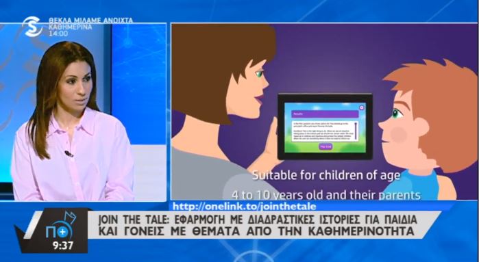 Από την παρουσίαση που έγινε στο TV ONE και στην εκπομπή της Νατάσας Ιωάννου "Ενημέρωση Τώρα"Join The Tale Η Join the Tale είναι μια καινοτόμα εφαρμογή (application) για κινητά τηλέφωνα και για tablets η οποία κέρδισε το βραβείο για την «Καλύτερη Πρόταση Κοινωνικής Επιχειρηματικότητας» στον Ψηφιακό Πρωταθλητή 2017.