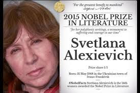 *Η Σουηδική Ακαδημία τίμησε τη Σβετλάνα Αλεξίεβιτς με το βραβείο Νόμπελ το 2015 «για την πολυφωνική της γραφή».