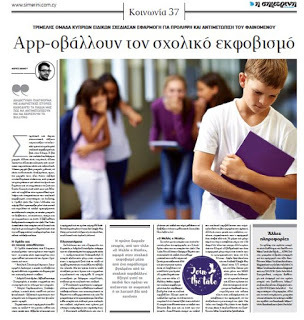 App-οβάλλουν τον σχολικό εκφοβισμόΤΡΙΜΕΛΗΣ ΟΜΑΔΑ ΚΥΠΡΙΩΝ ΕΙΔΙΚΩΝ ΣΧΕΔΙΑΣΑΝ ΕΦΑΡΜΟΓΗ ΓΙΑ ΠΡΟΛΗΨΗ ΚΑΙ ΑΝΤΙΜΕΤΩΠΙΣΗ ΤΟΥ ΦΑΙΝΟΜΕΝΟΥ