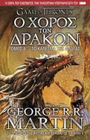 • Ο Χορός των Δράκων (A Dance with Dragons) (2011)Ο χορός των δράκων / George R. R. Martin · μετάφραση Αλεξάνδρα Λέτσα. - 1η έκδ. - Αθήνα : Anubis, 2011. - 662σ. · 23x14εκ. - (Το Τραγούδι της Φωτιάς και του Πάγου · 5) [στα ελληνικά κυκλοφόρησε σε 2 τόμους: ο πρώτος έχει τίτλο «Το κάλεσμα της φλόγας» και ο δεύτερος «Το σπαθί στο σκοτάδι»]