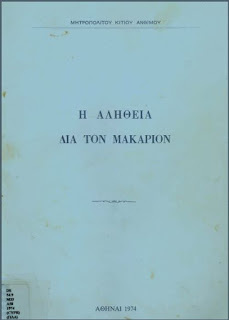 Η αλήθεια δια τον Μακάριον / Μητροπολίτου Κιτίου Άνθιμου. Αθήναι: [χ.ο.], 1974.