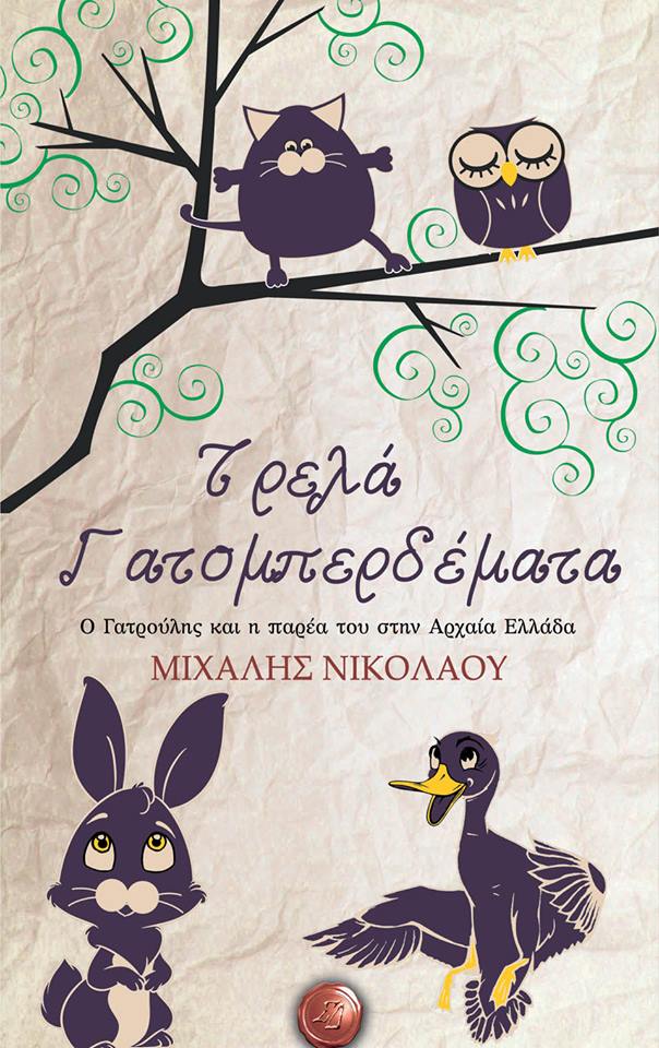 Τρελά γατομπερδέματα : Ο Γατρούλης και η παρέα του στην αρχαία Ελλάδα / Μιχάλης Νικολάου. Θεσσαλονίκη: Συμπαντικές Διαδρομές, 2015.Γνωρίσαμε τον Μιχάλη Νικολάου, κυρίως, σαν ένα πολύ καλό συγγραφέα ιστοριών τρόμου και φαντασίας*. Αντιλαμβάνεστε την έκπληξή μου όταν πληροφορήθηκα ότι η νέα του δουλειά που κυκλοφόρησε το 2015 από τις Συμπαντικές Διαδρομές ήταν ένα παιδικό παραμύθι.