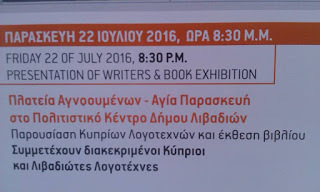 Παρουσιαση Κυπριων Λογοτεχνων Και Εκθεση Βιβλιου (Δήμος Λιβαδιών, Λάρνακα, 22 Ιουλ. 2016)