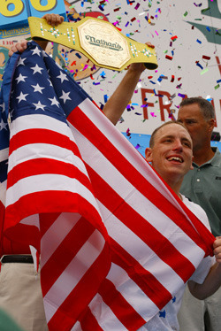 Every Independence Day since 1916, Nathan's Famous has sponsored their International Fourth of July Hot Dog Eating Contest at Coney Island. But don't for a minute think these contestants are simply a bunch of big dudes who can pack away a lot of food. This is serious business. They call themselves "competitive eaters" (I only thought this referred to trying to get seconds on Thanksgiving before my (at the time) teenaged stepbrothers devoured the whole spread.) Most belong to an organization called Major League Eating, and membership is required if you want to belly up to the barbecue at the Coney Island gorge fest.