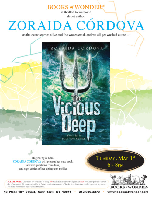 Today is my book birthday! The Vicious Deep is finally here! I've been waiting for this day for 10 years and I couldn't be happier. I'll be celebrating it at Books of Wonder on 18 W. 18th Street in NYC. We kick of at 6 PM. If you're in town, join me and get your own copy.