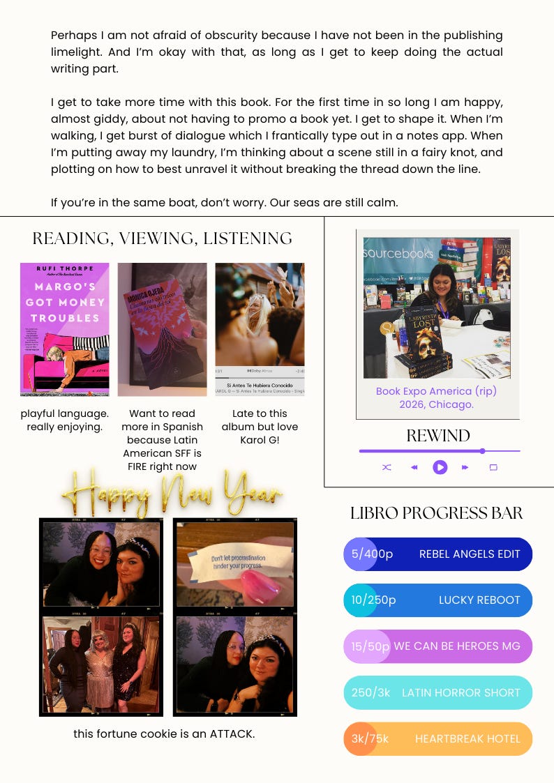 Speaking of launches. Here’s a rewind to the first day of the rest of my life. (Que dramatica.) Making slow but steady progress on WIPs. Wrote a weird short story for a Latinx horror anthology edited by .