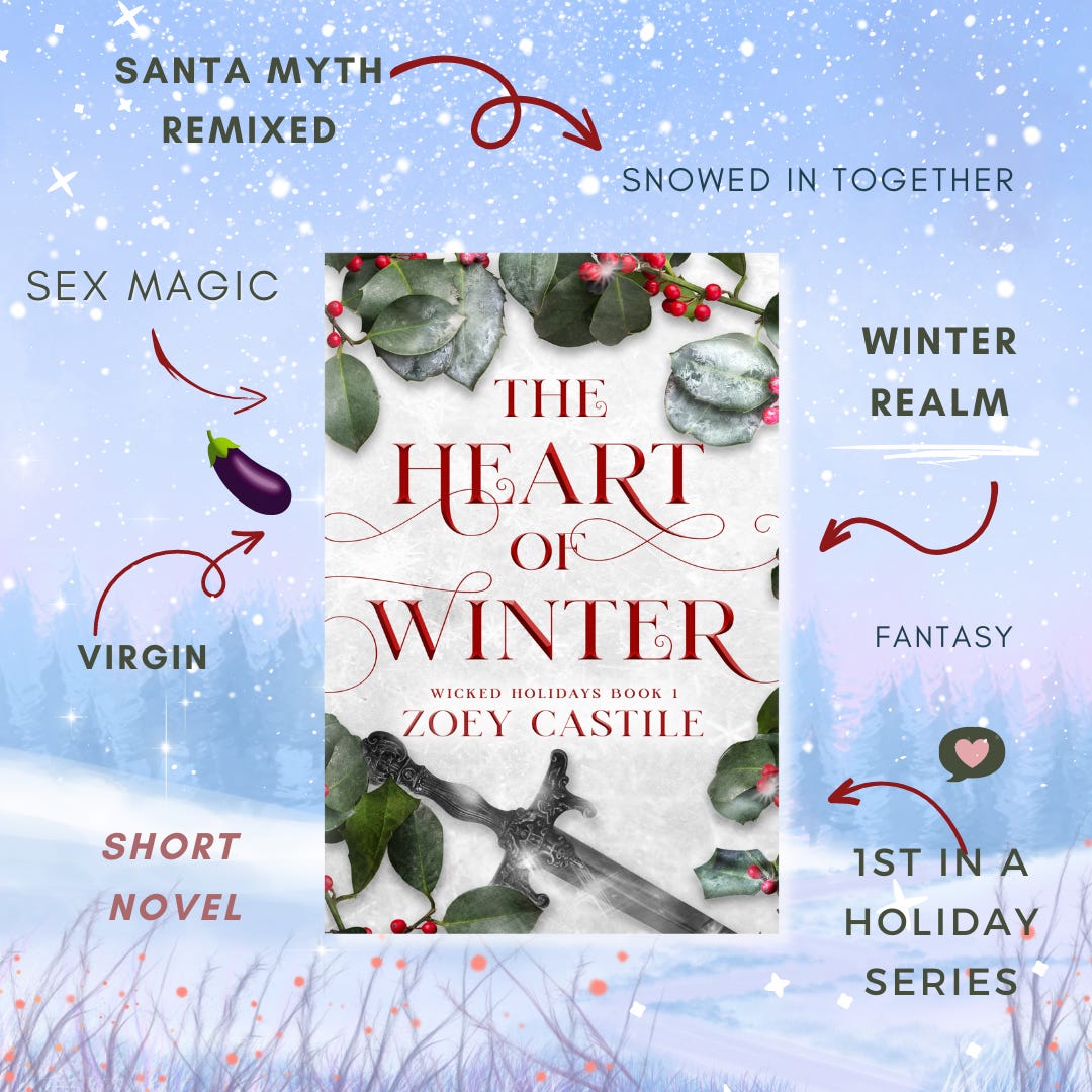 The second book is The Heart of Winter, which will now be published as Zoey Castile, just like my other high-heat romances. The book was featured on this episode of Fated Mates, so perhaps some of you have already picked it up. I’ve added about 5k words in preferred text.