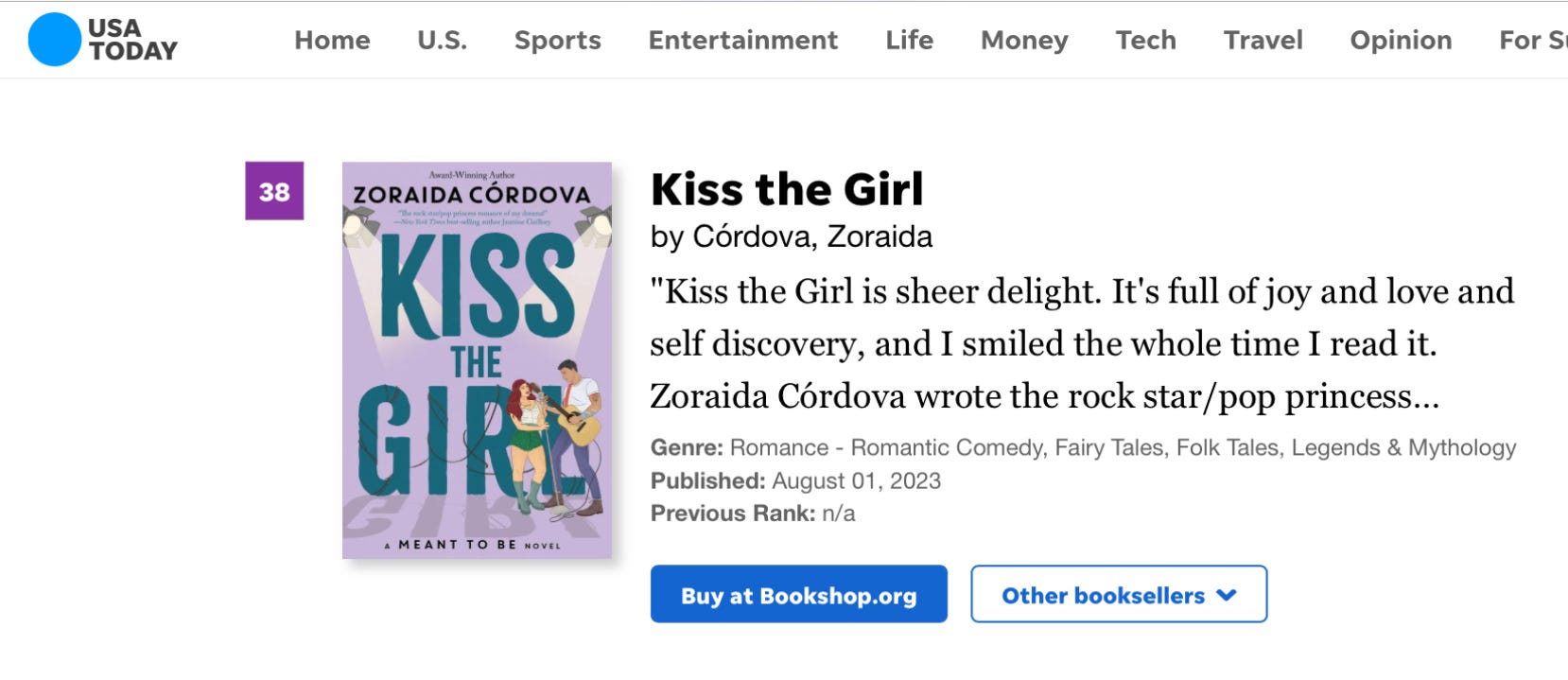Kiss the Girl had hit #38 on the USA Today Bestseller’s List.