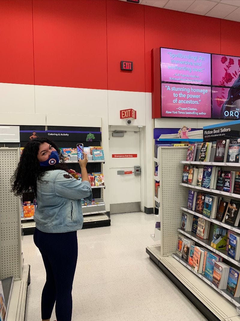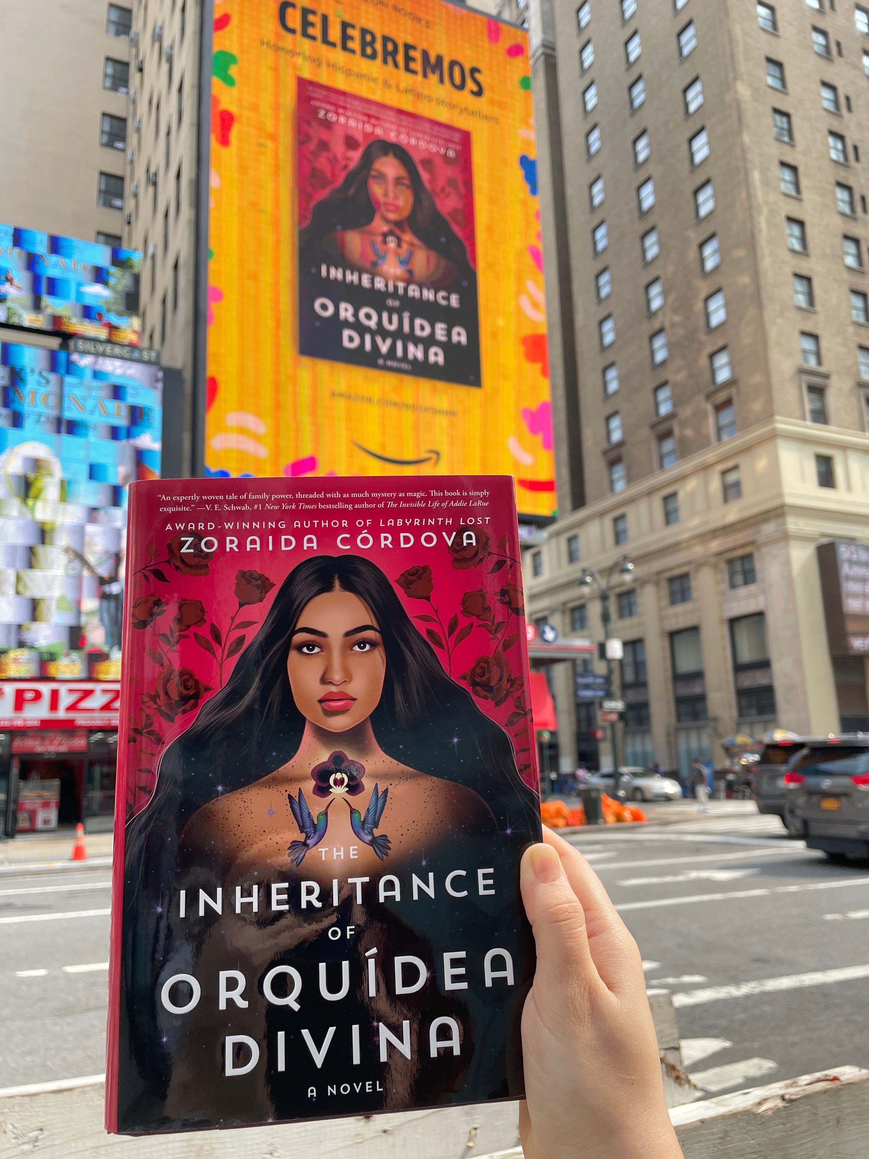 SEPTEMBER: After I sold it in 2017, The Inheritance of Orquídea Divina was finally published. I also moved to Los Angeles for two months. Here I am in Target waiting for my book to show up on the big screens. Here (right) is a picture my agency took of Orquídea on an Amazon billboard in Times Fucking Square.