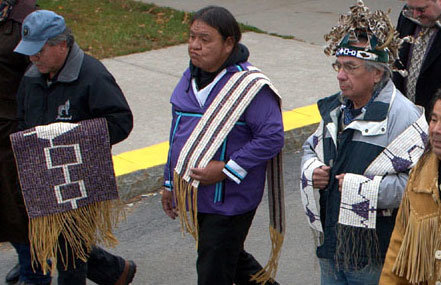 But lately, a few of those lost wampum belts are finding their way home. In 1989, twelve wampum belts in the collection of the New York State Museum in Albany were returned to the Onondaga Nation. Some of the belts had been in the museum’s possession since the 1890’s. A representative of the Onondaga Nation said, “These belts are our archives, that’s why we’ve been trying to get them back. They remind us that we are sitting there as peacemakers for our people and the world.”