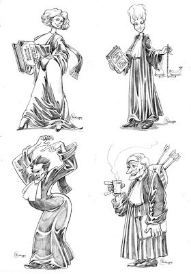 Deux exercices de style, ou disons dessins réalisés sur un temps «mort». Dessus un homme d'allure chinois dans un décor futuriste, qui se souvient des choses étranges ... Crayon et stylo sur papier d'emballage.En bas un jeune homme dans une sorte de costume du 16ème siècle, qui rêve. Dessin sur Schoeler-Hammer, encre Chinois, coloriage avec Photoshop.