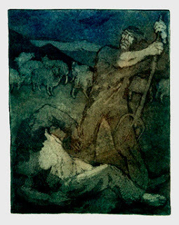 這種蝕刻顯示該隱和亞伯。從1976年學校工作。
