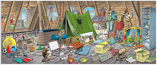 Dessus une illustration d'observation avec un grenier plein de trucs pour Editeur Malmberg dans les Pays- Bas. Une commande agréable. Surtout depuis le processus de création