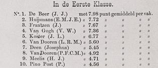 Quand il avait onze ans Vincent a quitté le pensionnat à Zevenbergen à l'école publique Roy Willem II, à Tilburg. Il connaissait déja un peu le français, l' allemand et l'anglais. A Tilburg, Vincent a bien fait. La preuve en est les résultats scolaires ci-joint (en haut). À l'âge de 15 ans, il a quitté cette école encore une fois en raison de problèmes de comportement.