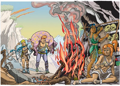 and Sanne in a prehistoric setting with Wiona and Josh, whose