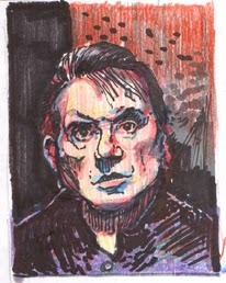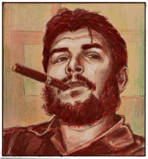 Experiment with a portrait of Che, with cigar. I made three different drawings of the man, and melted them together.