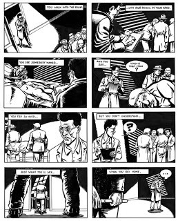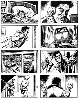 This is a quick test with brush and ink, and pencil. It had to be quick, because the imperfection of the brush (me using it) contributes to the volatile nature of what I want to draw. In this case "Ballad of a thin man", a magnificant song by Bob Dylan. You can look at this page while listening to the intro of the song. The next page you can read as a comic or as a graphic novell if you like. The effect is stronger when you listen to the music at the same time.