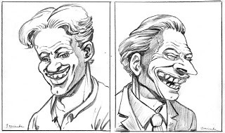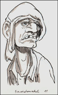 Vorige schetsen zijn een beetje met een somber beeld geëindigd. Vandaar presenteer ik jullie vandaag twee schetsen van lachende mensen. Deze hebben wel meer tijd in beslag genomen dan vijf minuten. Over de eerste deed ik negen minuten, over de tweede dertien. Enjoy!
